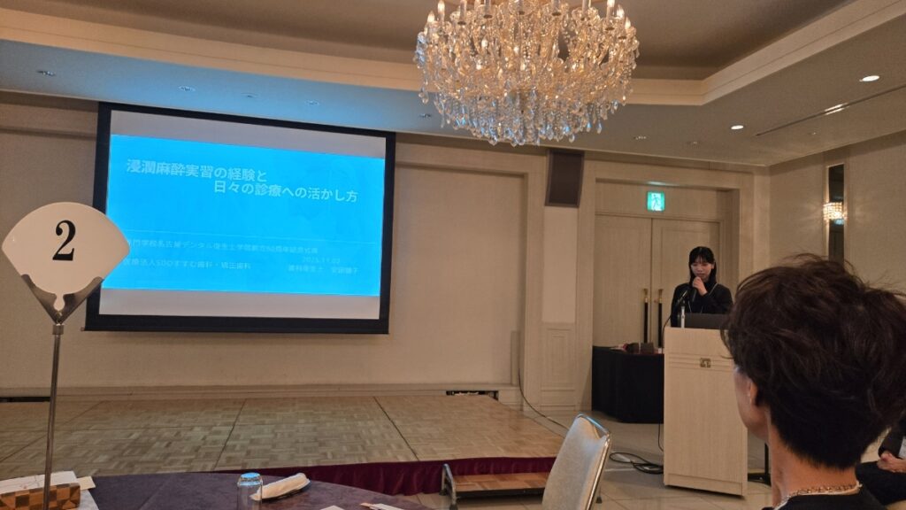 続いて、実際に認定資格を取得し、日々の診療で麻酔業務を行っている当院の歯科衛生士2名が登壇しました。