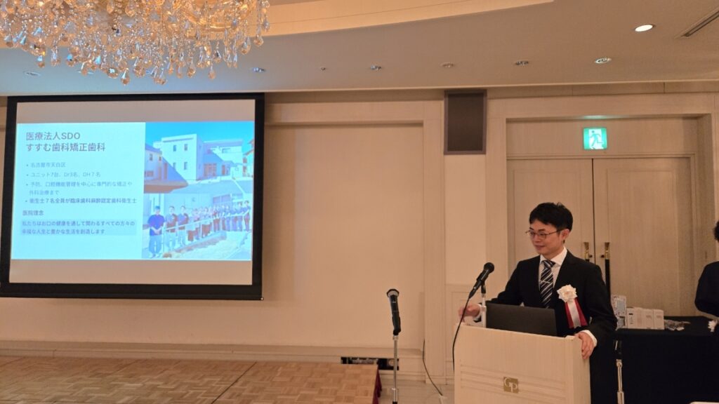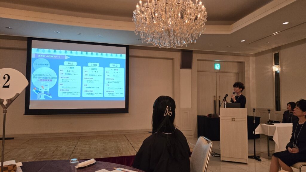 教科書的な話だけでなく、実際に現場でどのようにトレーニングを積み、どのように患者様と向き合っているかという「生の声」を発表しました。 多くの著名な先生方や同業の皆様の前での発表ということで緊張感もありましたが、堂々としたプレゼンテーションで、日頃の研鑽の成果をしっかりと伝えてくれました。